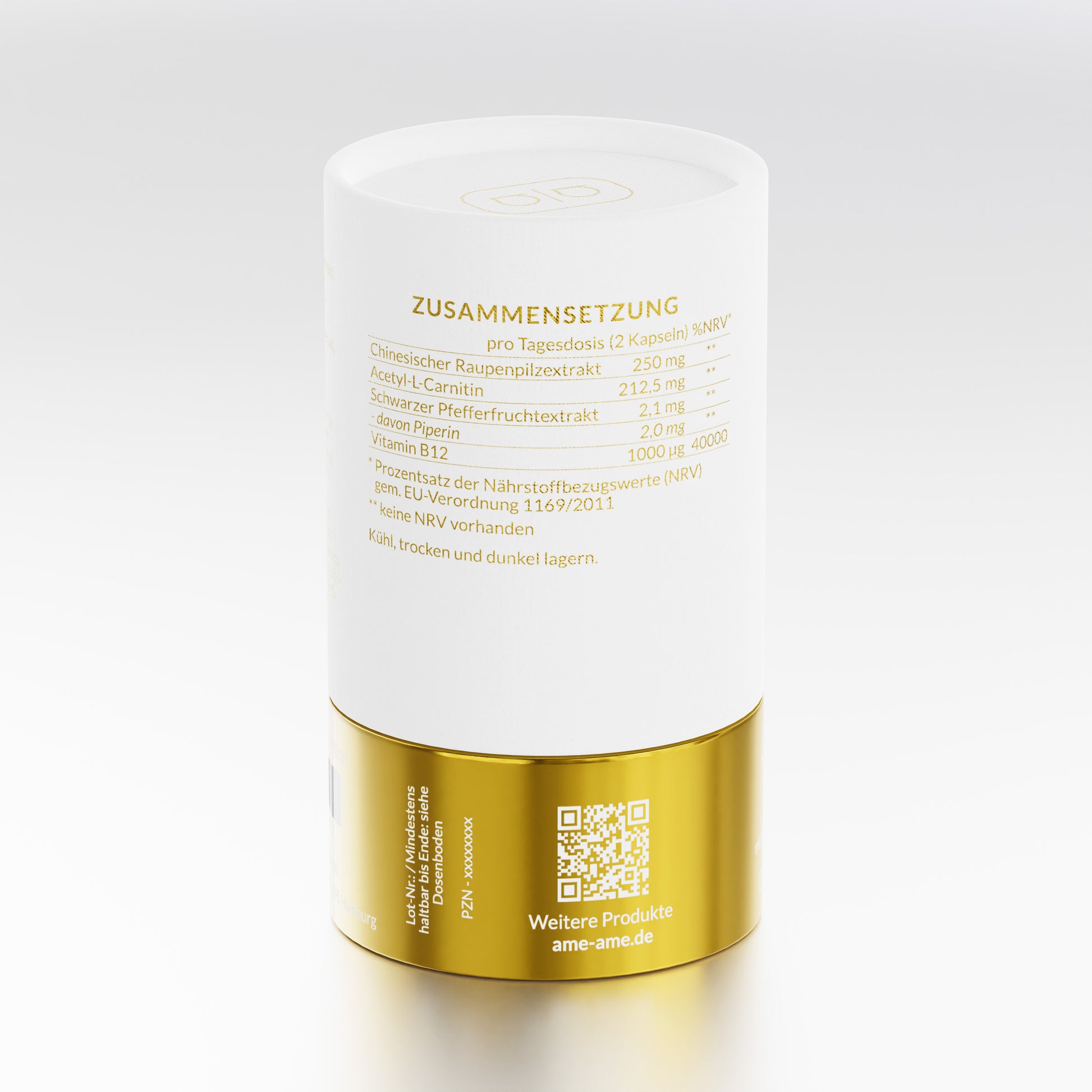 Acetyl-L-Carnitin ist eine Aminosäure, die die Energieproduktion in den Zellen unterstützt. Es hilft dabei, Fettsäuren in die Mitochondrien zu transportieren, wo sie zur Energiegewinnung verbrannt werden. Die Kombination mit Cordyceps kann die allgemeine Energiebereitstellung im Körper erhöhen, was zu einer verbesserten körperlichen Leistungsfähigkeit und Ausdauer führt. Beide Substanzen zusammen können die Effizienz der Energieproduktion optimieren und die Erholung nach dem Training verbessern.