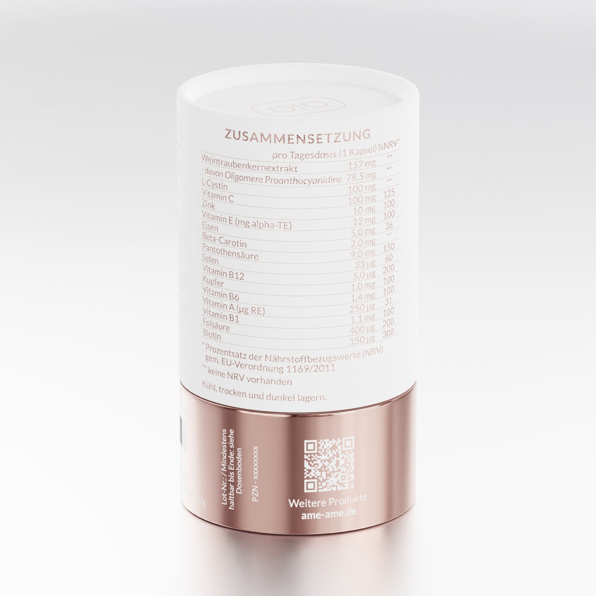 Weintraubenkernextrakt ist reich an Proanthocyanidinen, starken Antioxidantien, die synergistisch mit Vitamin C wirken können, um Zellschäden durch freie Radikale zu reduzieren und die antioxidative Kapazität zu erhöhen.